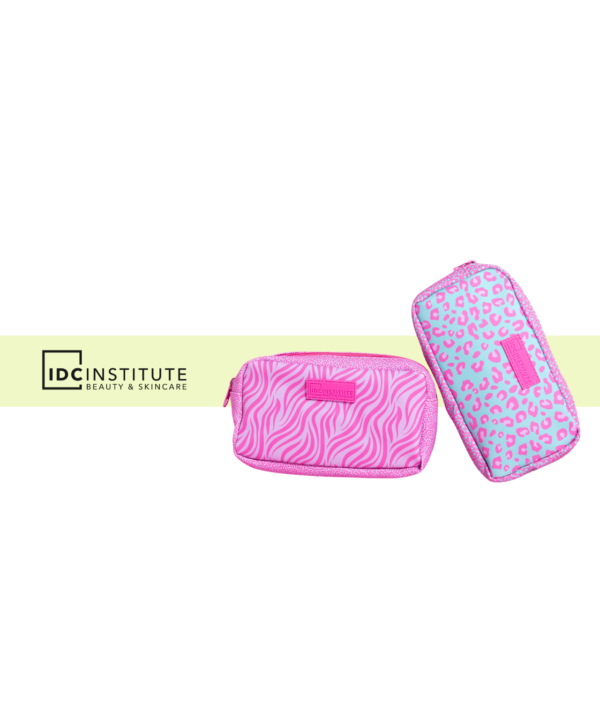 Neceser de IDC Institute, con un estampado moderno y chic, mantiene tus productos organizados y añade estilo a tu rutina diaria. Ideal para viajes o uso diario. Disponible en dos modelos diferentes en un divertido estampado.