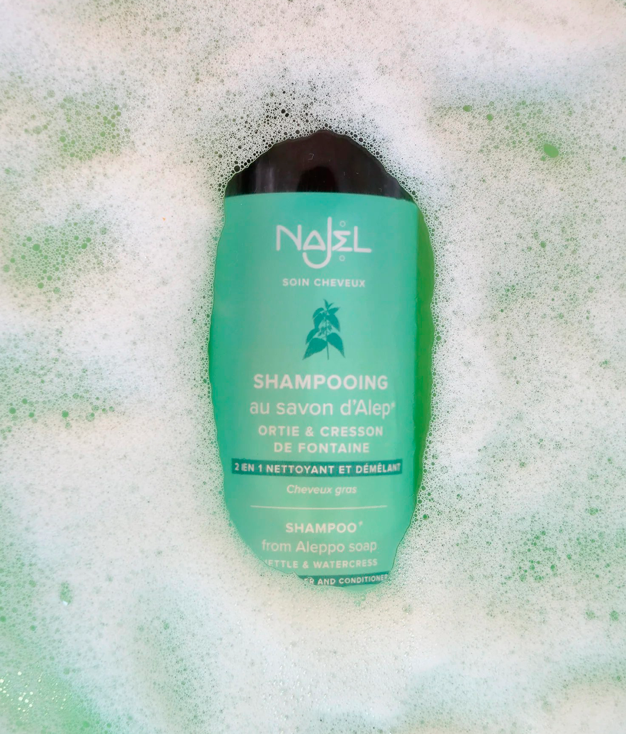 La textura ligera y fluida del champú de jabón de Alepo NAJEL se transforma en una delicada espuma al contacto con el agua, envolviendo el cabello de manera uniforme. Ideal para cuero cabelludo graso, este champú purifica y equilibra la producción de sebo, dejándote una sensación de limpieza y frescura durante mucho tiempo. La manzanilla calma las irritaciones y aporta confort al cuero cabelludo. Utilizado regularmente, este champú devuelve brillo y vitalidad a tu cabello, al mismo tiempo que lo protege de las agresiones externas. Perfecto para usar en el cuero cabelludo, largos y puntas, este champú líquido es tu mejor aliado contra el cabello graso y sin brillo.