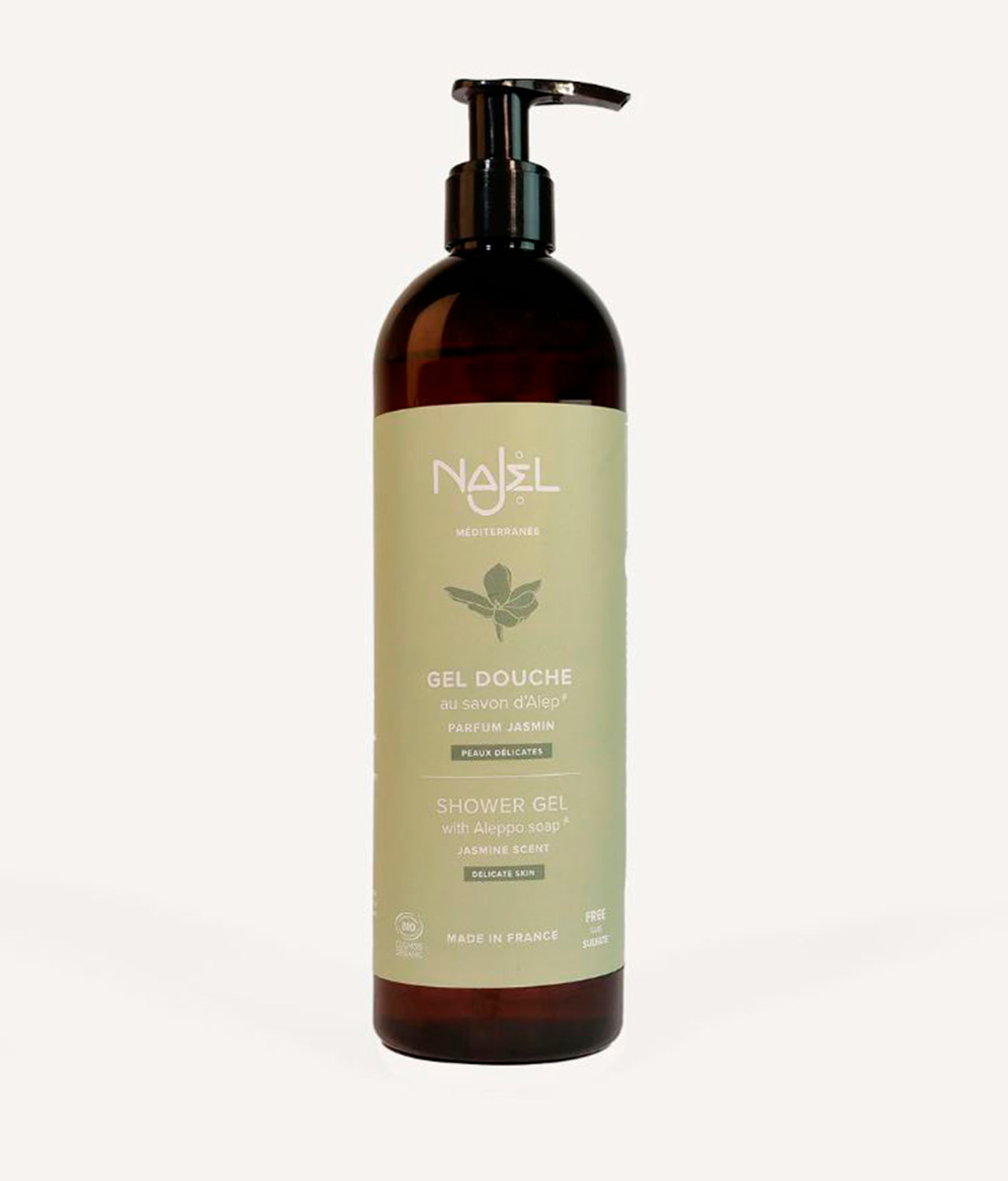 Descubre nuestro gel de ducha de jazmín, un auténtico tesoro de beneficios para tu piel. Enriquecido con aceite de oliva y aceite de laurel, este gel de ducha a base de jabón de Alepo sigue una receta ancestral para ofrecer una sensación de purificación y frescura. Compuesto de agua de manzanilla, calma la piel y deja un cautivador aroma a jazmín. Cada ingrediente ha sido seleccionado por sus propiedades calmantes y nutritivas, garantizando una piel suave y sutilmente perfumada, sin comprometer la naturalidad y la certificación orgánica.
